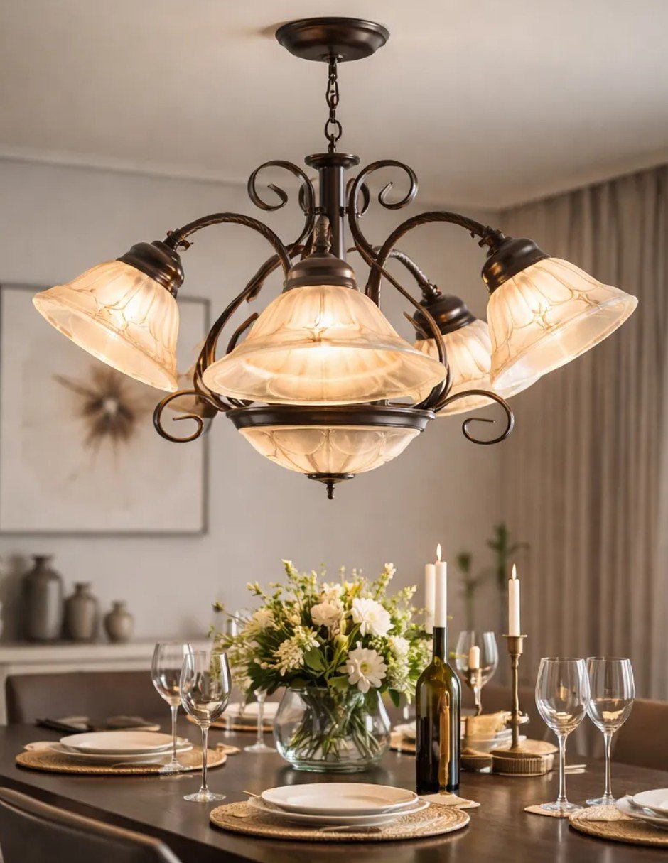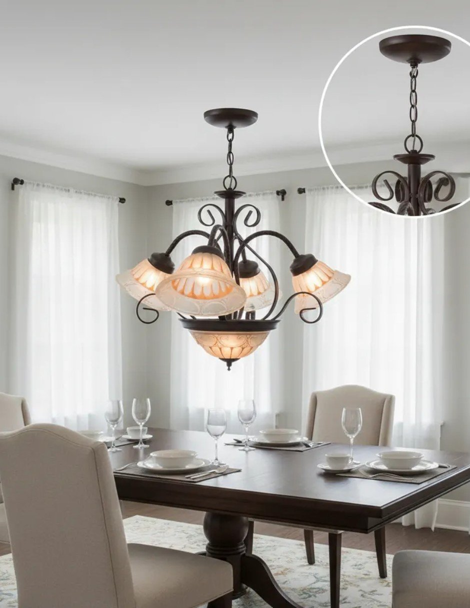 Con una potencia de 180W, este candil es ideal para iluminar grandes áreas, permitiendo el uso de diferentes tipos de fuentes de luz, como LED, halógena, incandescente y fluorescente. La capacidad para cinco focos te brinda la flexibilidad de crear la atmósfera perfecta, adaptándose a tus necesidades de iluminación.