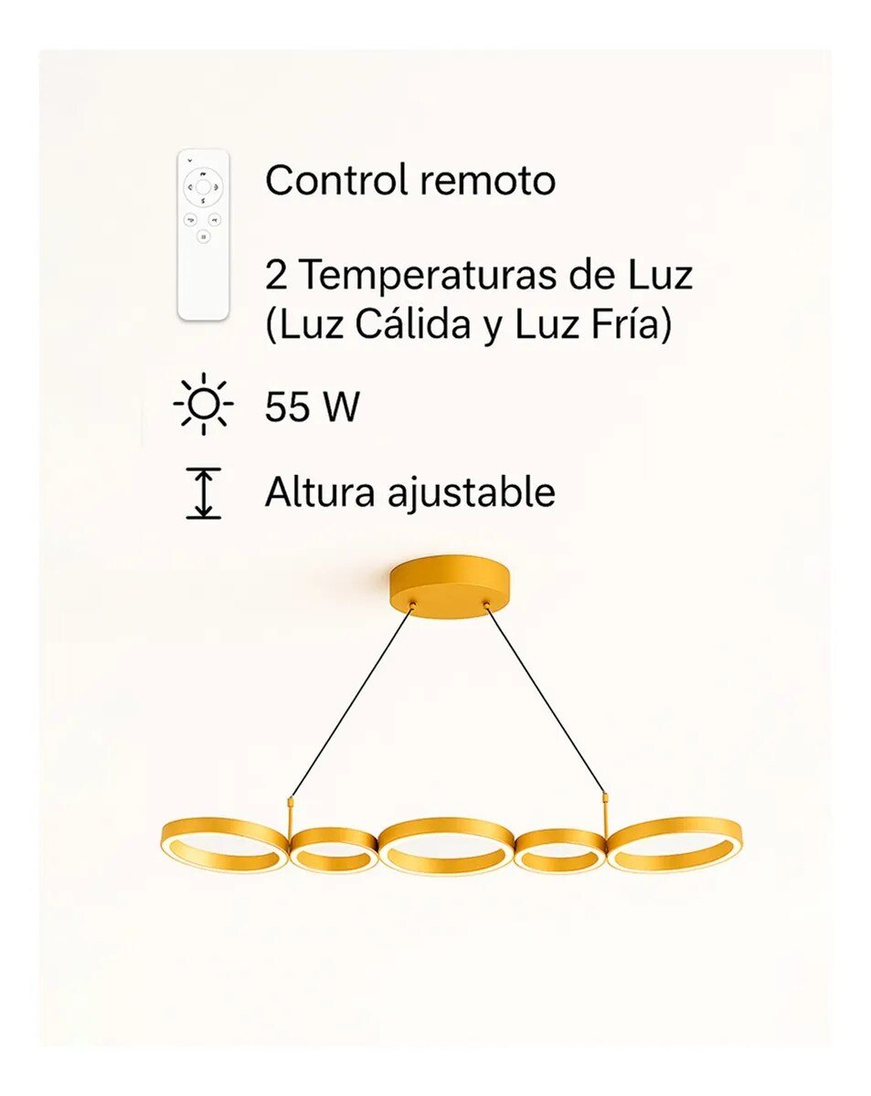 La lámpara colgante decorativa CITYLUZ XX-01V-0055-08A transforma tu espacio con su elegante diseño en aluminio y silicona. Con una potencia de 55 W, ofrece la versatilidad de luz cálida y fría, permitiendo ajustar el ambiente de tu sala según tus necesidades y preferencias.
