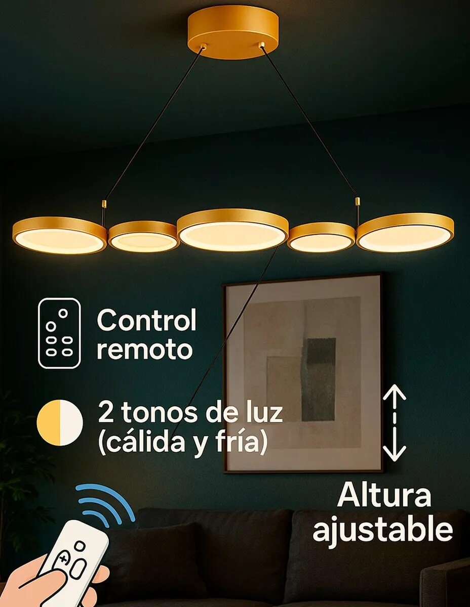 Su fácil instalación en el techo proporciona una iluminación directa y envolvente, ideal para crear una atmósfera acogedora en reuniones familiares o momentos de relax. Con control remoto incluido, puedes gestionar la intensidad de la luz de manera sencilla y cómoda desde cualquier punto de la habitación.