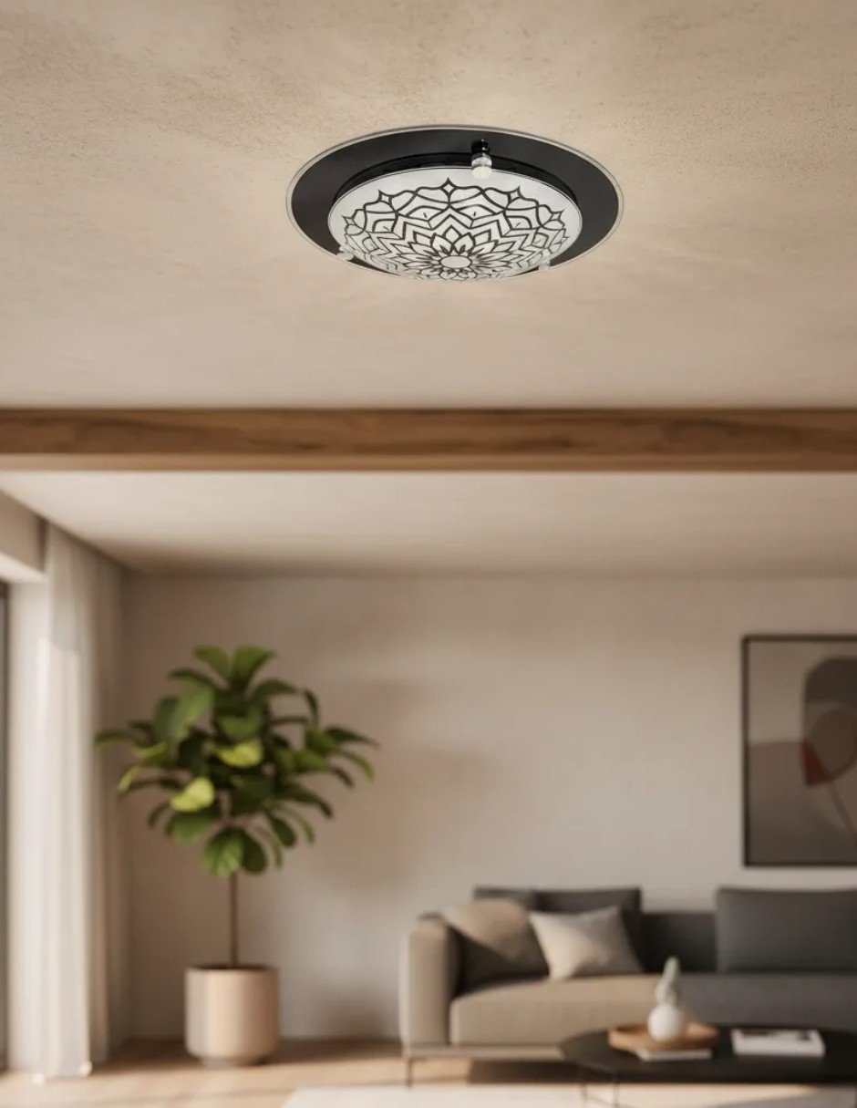 La lámpara de techo Cityluz es la elección perfecta para quienes buscan un diseño moderno y funcional. Su formato de plafón redondo negro se adapta a cualquier estilo de decoración, aportando un toque elegante y contemporáneo a tus espacios. Fabricada con una base de metal y pantallas de cristal, esta lámpara combina durabilidad y estética.