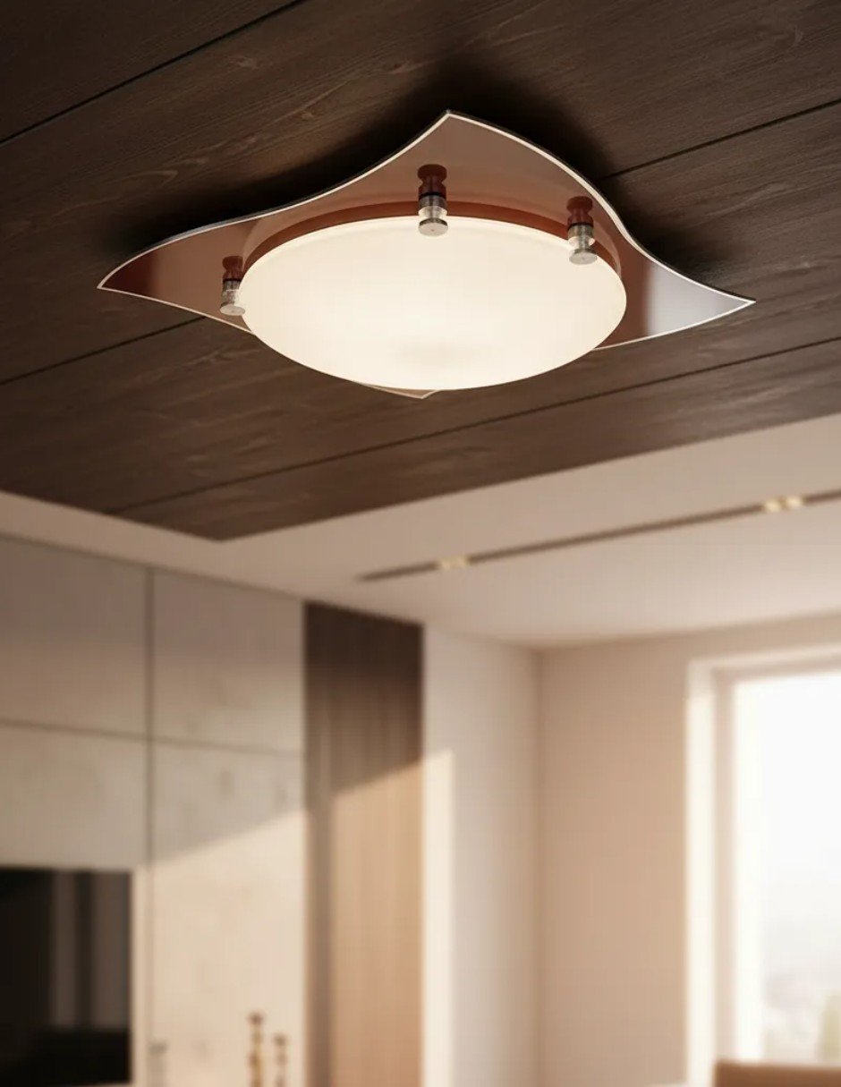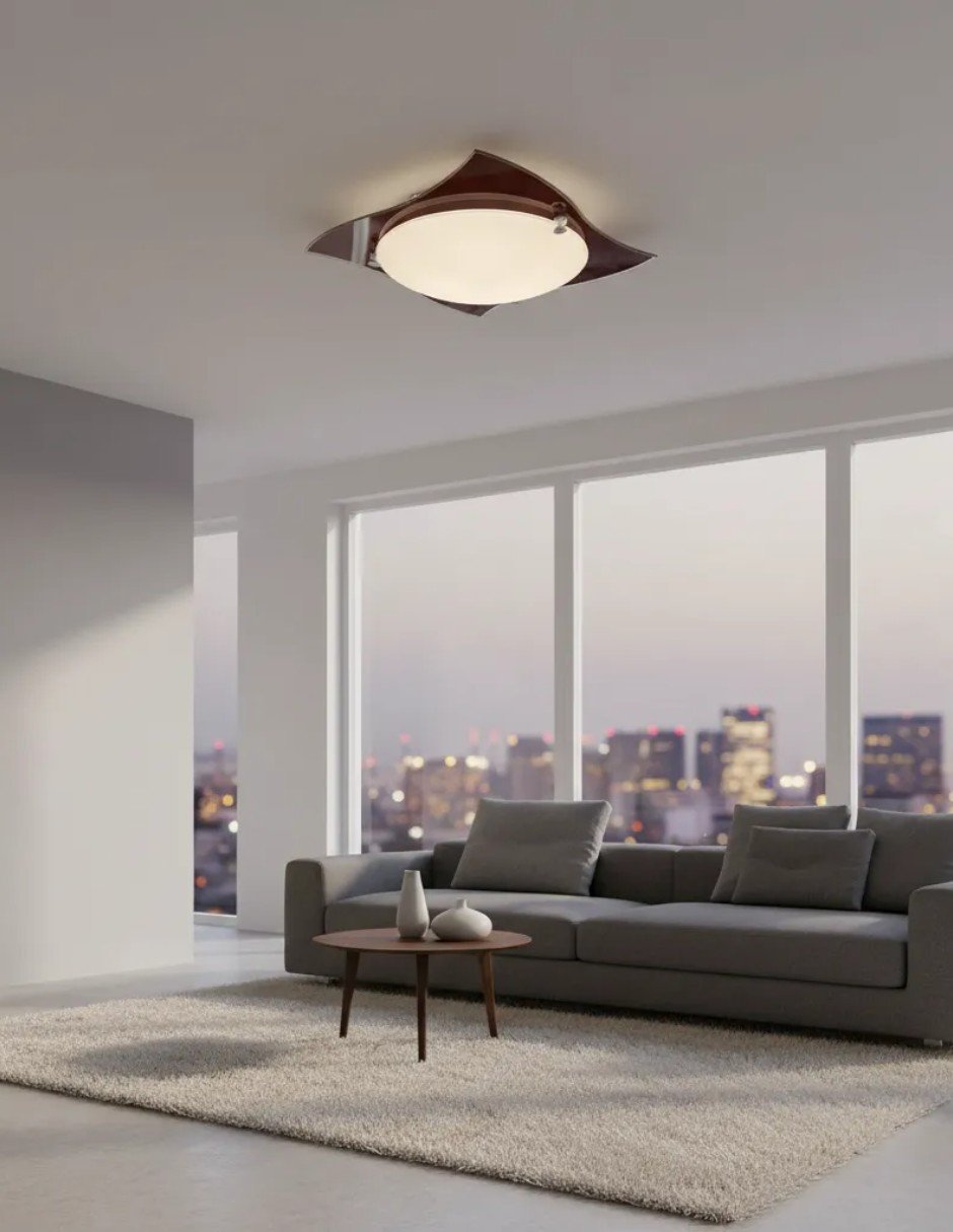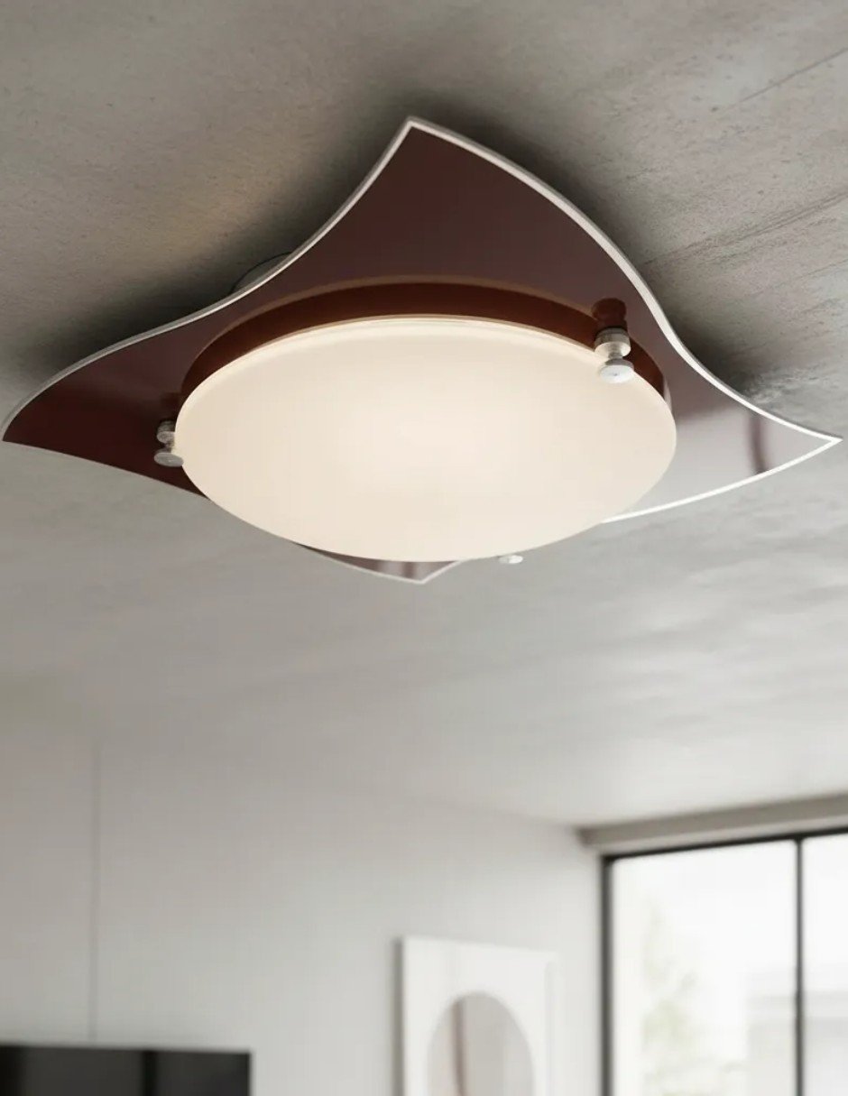 Ideal para salones, comedores o espacios de trabajo, el Plafón Pañuelo Chocolate ilumina con suavidad, creando un ambiente acogedor y agradable. Su instalación en el techo permite maximizar el espacio y la luminosidad, convirtiéndola en una opción funcional y estética para cualquier hogar.