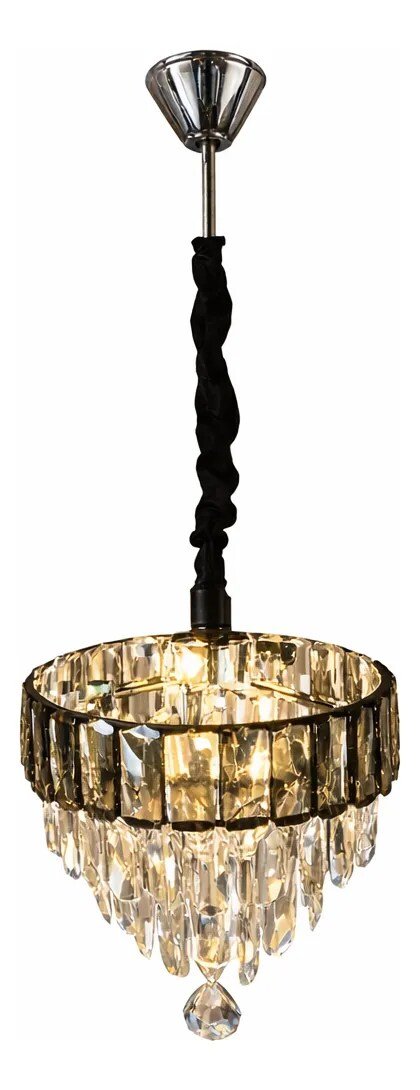 Cuenta con altura ajustable, lo que permite adaptarla fácilmente a diferentes espacios. Funciona con tres focos base E14 (no incluidos).