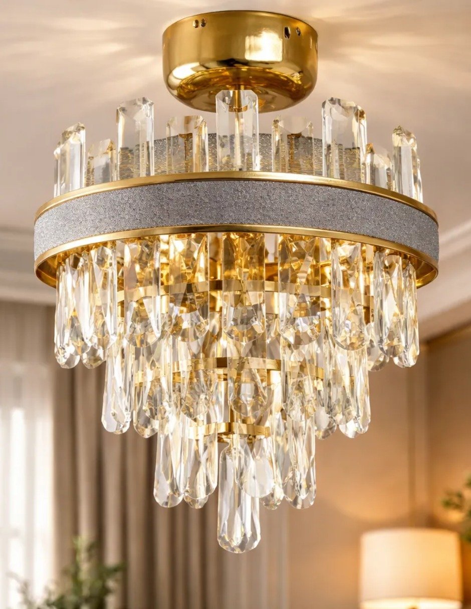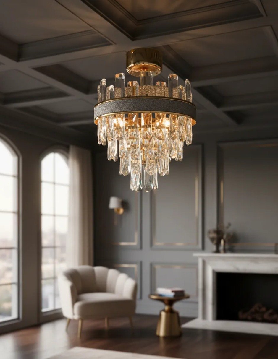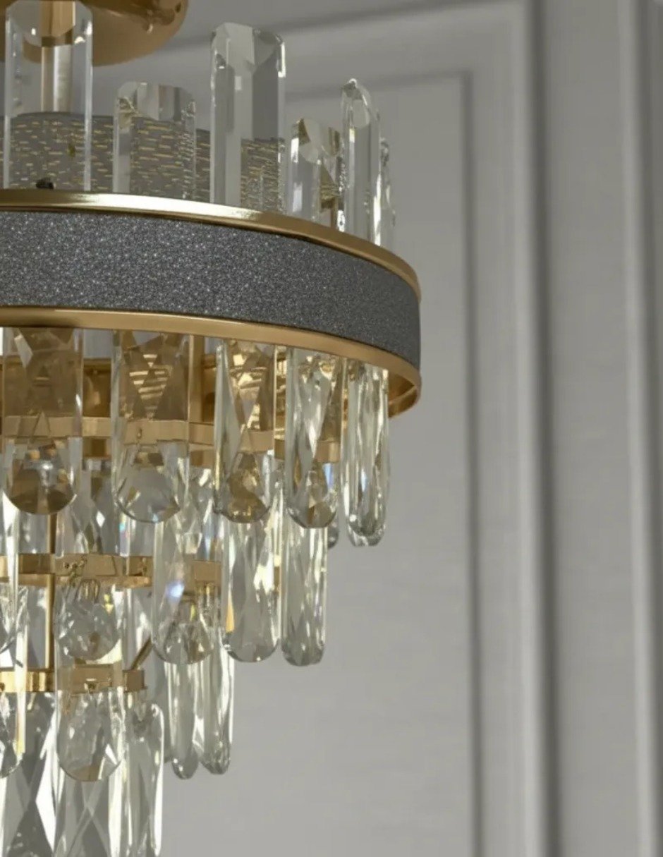 La lámpara colgante Cityluz Corona Cristal es una pieza decorativa de estilo elegante diseñada para transformar cualquier espacio en un ambiente moderno y sofisticado. Su estructura metálica en acabado dorado combinada con cristales tipo cascada crea reflejos brillantes que aportan profundidad y lujo a salas, comedores, recibidores o recámaras.