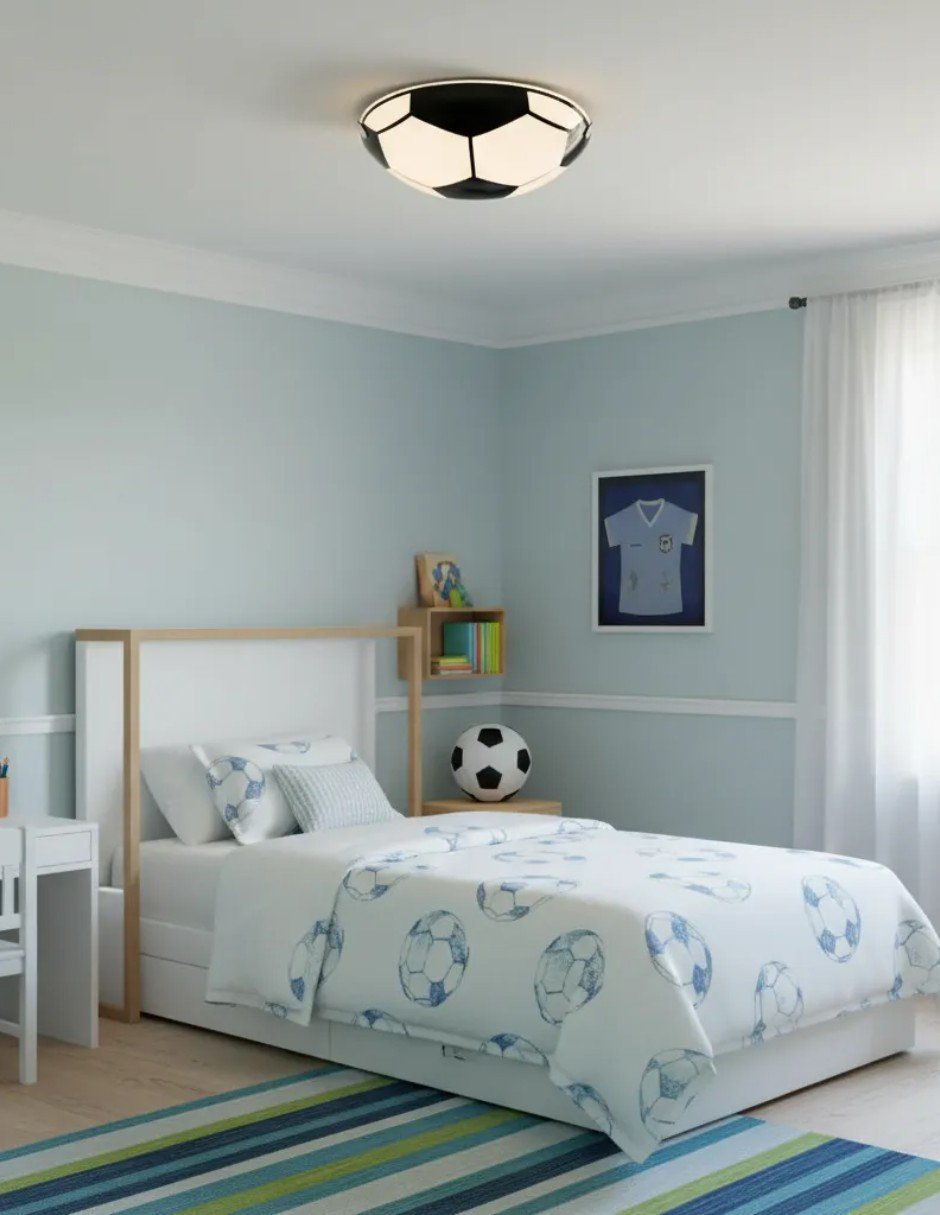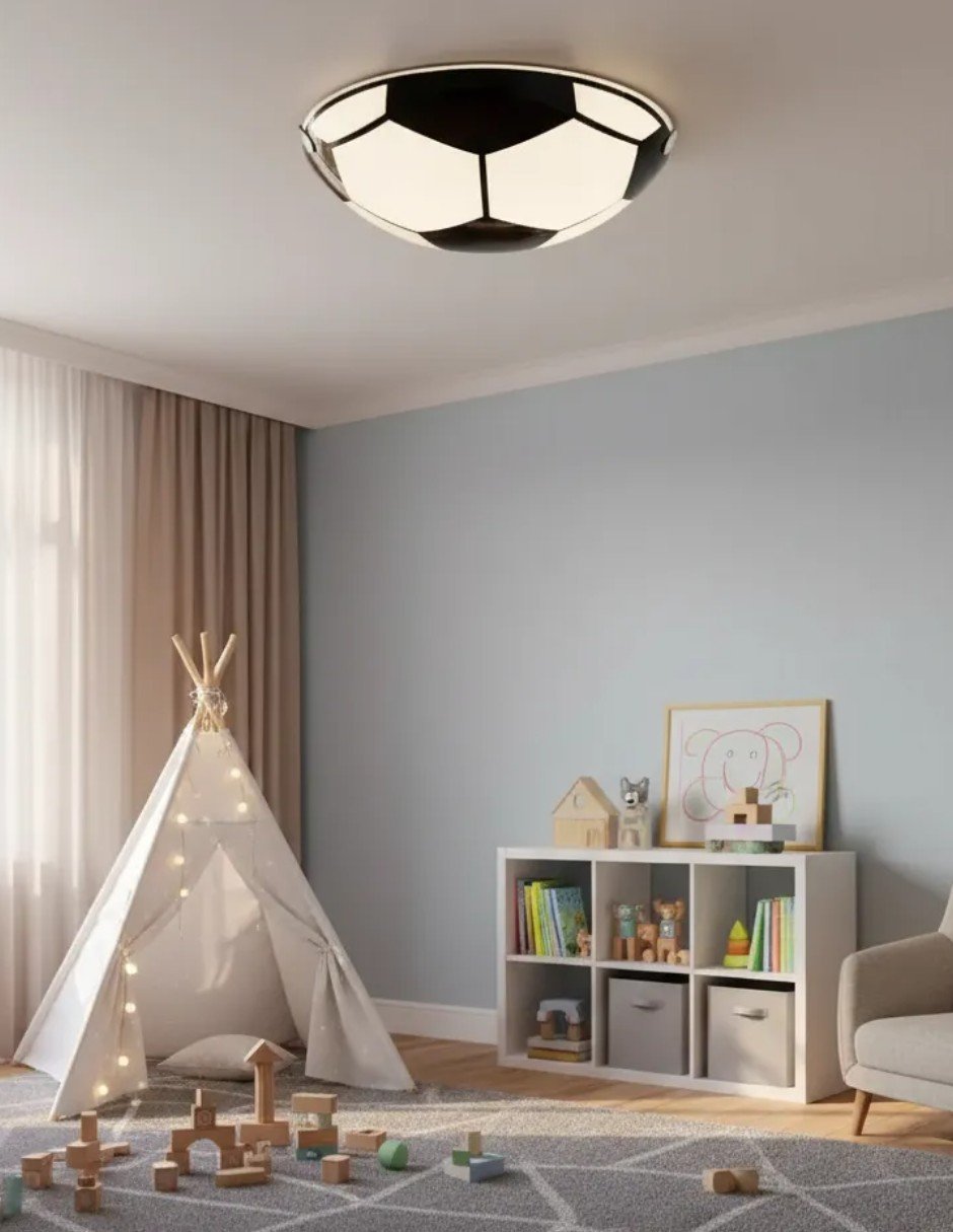 La lámpara de techo infantil Cityluz Balón Fútbol Opal es la elección perfecta para iluminar el espacio de juego de los más pequeños. Con un diseño atractivo que evoca la pasión por el fútbol, esta lámpara no solo proporciona luz, sino que también añade un toque divertido y dinámico a la habitación.
