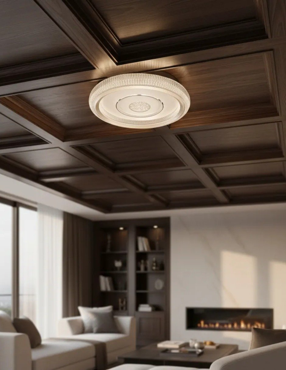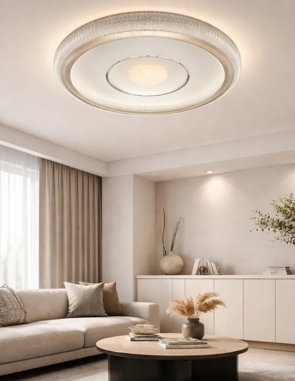 Plafón LED moderno redondo, ideal para sala, comedor, recámara u oficina. Su diseño minimalista brinda iluminación uniforme y eficiente, perfecta para espacios residenciales o comerciales.