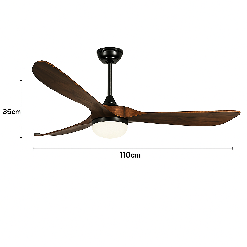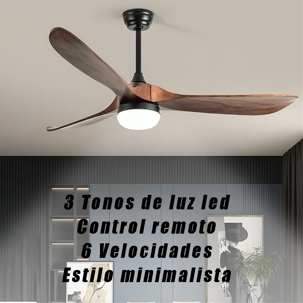 El ventilador incluye tres luces que proporcionan una iluminación cálida y acogedora, ideal para crear un ambiente agradable en su hogar. Su funcionamiento silencioso asegura que pueda disfrutar de la brisa fresca sin interrupciones, convirtiéndolo en una opción ideal para dormitorios y salas de estar.