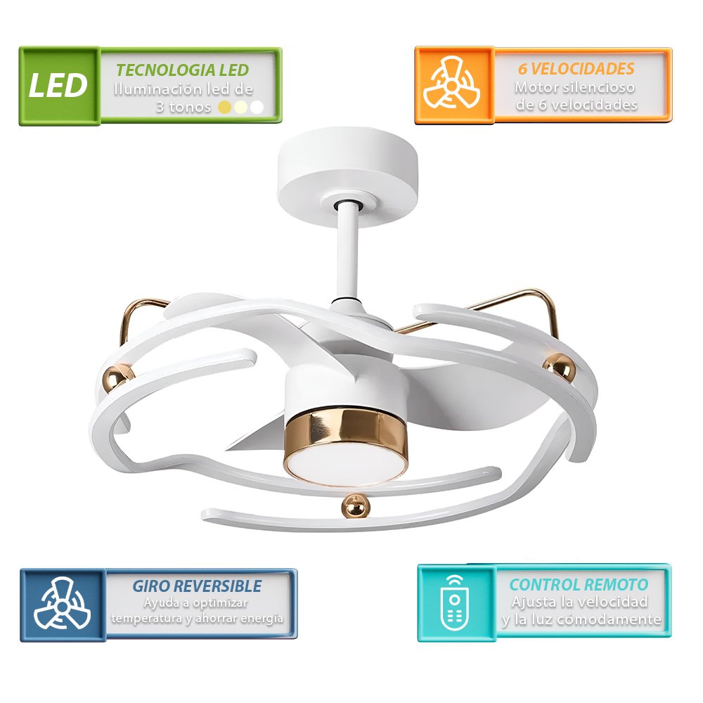 Transforma tus espacios con elegancia y funcionalidad gracias a la Lámpara Ventilador de 3 Aspas Blancas de Cityluz. Inspirado en el refinado diseño francés, este modelo combina líneas suaves y acabados modernos que aportan un toque cómodo a cualquier ambiente, desde salas hasta dormitorios o comedores. Sus aspas blancas no solo garantizan una eficiente circulación de aire, sino que también complementan la decoración con una presencia ligera y estilizada. La potente iluminación LED de 160W ofrece una luz regulable en temperatura de color, que va desde los 3000K (cálido) hasta los 6000K (frío), permitiéndote crear la atmósfera perfecta para cada momento del día. Con el control remoto incluido, puedes ajustar fácilmente tanto la intensidad de la luz como la velocidad del ventilador, todo desde la comodidad de tu sillón o cama. Características destacadas: Diseño elegante de inspiración francesa 3 aspas blancas para una ventilación suave y silenciosa Iluminación LED de 160W con temperatura ajustable (3000K a 6000K) Control remoto para manejo de luz y ventilador Ideal para interiores modernos que buscan estilo y confort Dale a tu hogar un aire fresco con un diseño que deslumbra.