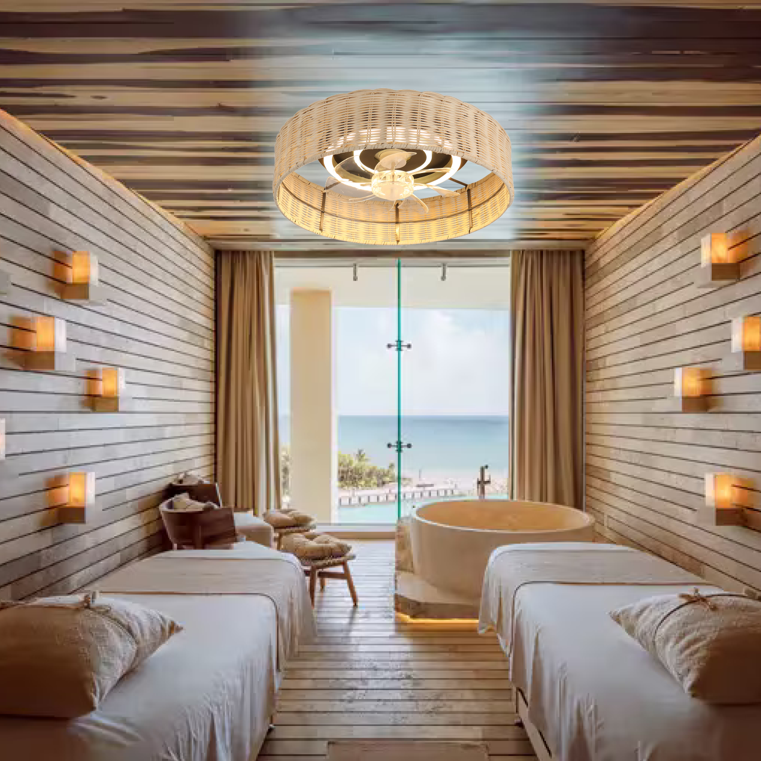 La rejilla de cuerda de cáñamo no solo aporta un toque de estilo, sino que también garantiza durabilidad y resistencia. Con el ventilador CITYLUZ, disfrutarás de un ambiente fresco y acogedor, ideal para cualquier época del año.